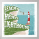 Illustration de style poster rétro du phare de Beachy Head. Un phare rayé rouge et blanc dans la Manche au large des falaises du Sussex. Un design pour tous ceux qui aiment les phares. Le phare est vu du haut des falaises blanches. Les mots phare beachy head sont écrits dans l'herbe sur le sommet de la falaise.