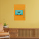 A nostalgic and vibrant pop-art composition featuring a turquoise analog cassette tape next to a matching pencil, referencing the classic way to "rewind" music. The bright orange background makes the colors pop, evoking a fun, retro 80s and 90s aesthetic. This piece is perfect for music lovers, vintage enthusiasts, and anyone looking to add a playful, high-contrast, and colorful statement to a living room, media room, or office.