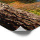 Cette belle affiche de voyage en beaux-arts présente une jeune femme assise et rêvant sur le quai au bord d'un grand étang en Nouvelle-Angleterre. L'automne est dans l'air. L'eau est entourée d'arbres aux magnifiques couleurs feuillues d'automne, jaune, vert, rouge, orange et or. Le ciel bleu est couvert de nuages blancs et tout cela se reflète dans l'eau. Le tronc d'un grand pin définit le côté gauche. Le brillant soleil se reflète dans ses cheveux rouges.