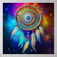 L'art de l'IA représente un attrapeur de rêves coloré en plumes rouges, roses, bleues, vertes et blanches.