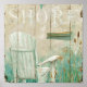 © Daphne Brissonnet / Pomme sauvage. Image pittoresque d'une rivière, d'une chaise blanche en bois, et d'un bateau dans l'eau. Le mot Shore peut aussi être vu sur l'image.