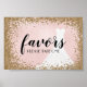 Cadre scintillant en rose gold (faux) pailleté éclaboussé tout autour avec un effet texturé fond rose blush et notre robe de mariée sirène exclusivement la nôtre. Dit "Faveurs, veuillez prendre un"