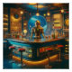 Poster Robot Bartender in Interstellar Space Age Dive Bar