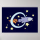 Poster Rocket Bleu foncé Enfants Espace rétro