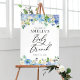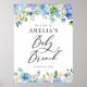 Bienvenue aux invités à votre événement avec ce panneau de bienvenue personnalisable pour le brunch bébé. Il présente des guirlandes florales aquarelle de roses bleues, violettes et blanches, d'anémones et d'hydrangées. Personnalisez ce panneau de brunch à fleurs en ajoutant les détails de votre événement. Ce panneau d'accueil de baby shower d'hydrangea est parfait pour les baby showers de printemps et d'hiver.
