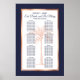 Ajoutez votre touche spéciale à ce design élégant avec script moderne et texte bleu marine, y compris une silhouette de palmier d'or rose avec un cadre en cuivre or rose métallique. Ce tableau de sièges présente les noms de la mariée et du marié ainsi que les mots "Mangez, Buvez et Soyez Joyeux" et "S'il vous plaît, trouvez votre siège". Les modèles peuvent accueillir jusqu'à huit tables et jusqu'à 10 ou 11 noms par table.