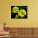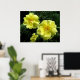 Cette affiche est décorée de trois belles fleurs d'une rose dorée à l'ancienne dressée contre un arrière - plan de vert. Le parfum céleste parfumée le jardin.