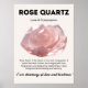 Plongez-vous dans l'étonnante étreinte de l'amour et de la compassion avec notre enchanteresse Rose Quartz Stone Crystal Signiing Poster. Explorez les profondeurs douces et roses de ce bijou qui réchauffe le coeur, en découvrant sa signification spirituelle profonde et ses propriétés curatives. Décorez votre espace avec l'affiche qui rayonne l'essence de l'amour, ce qui en fait un complément parfait pour les amateurs de cristal et ceux qui cherchent à cultiver le coeur et l'âme.