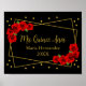 Or et noir Quinceañera avec des roses rouges traditionnelles vibrantes et typographie classique