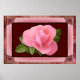 Jolie impression florale présente une rose rose rose riche sur un arrière - plan bordeaux profond et encadrée de bordure motif rose et bordeaux.
