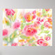 Poster art imprimer roses abstraits en rose, jaune, vert et blanc, à partir de peinture originale aquarelle.
