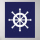 Poster Roue de navire nautique blanc et marine