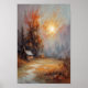 Cette affiche générée par l'IA montre la sérénité de l'automne à la campagne. Un cabine rustique niché au milieu d'arbres imposants, ses feuilles mêlent oranges chaudes, rouges et marron, reflétant les riches tons de l'automne. Le soleil brillant projette une lumière douce et dorée sur le cadre paisible, créant une atmosphère tranquille et nostalgique. La texture inspirée du coup de pinceau donne à cette pièce une sensation impressionniste, parfaite pour ceux qui apprécient la décoration rustique ou d'inspiration nature. Cette oeuvre d'art évoque le charme tranquille d'un matin d'automne, idéal pour des espaces de vie confortables, des cabines, ou toute chambre qui a besoin d'une touche de chaleur et de nature. L'arrière - plan brumeux ajoute de la profondeur à la scène, tandis que l'éclairage doux met en valeur la beauté naturelle de la saison. C'est un paysage d'automne intemporel qui apporte l'essence apaisante de l'extérieur dans votre maison.