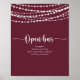 Cette affiche à cordes rustiques illumine le mariage à barre ouverte bordeaux est parfaite pour un mariage classique. Le design est orné de superbes lampes à cordes peintes à la main dans un arrière - plan bordeaux.