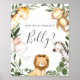 Donnez à vos invités une belle direction avec nos animaux de safari devinez la taille est maman's ventre signe de jeu, avec l'aquarelle vert eucalyptus garland et élégante police de style manuscrit.