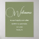 Affiche de bienvenue de mariage vert sage avec une belle police blanche. Découvrez plus de produits avec ce design dans la collection ci-dessous.
