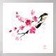 Fleur de Sakura rose. Japon peinture traditionnelle à l'encre sumi-e. Affiche artistique de Sveta Mikhalevich