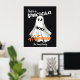 Poster de voeux Ghoost tactile Une affiche d'Halloween ludique avec un joyeux fantôme de dessin animé avec un audacieux "BOO!" en lettrant à travers sa poitrine. Dans un décor noir spectaculaire, le design s'affiche avec une typographie fantaisie et des couleurs festives. Le texte en haut et en bas crée un message saisonnier vivant, tandis que la zone de nom de famille est entièrement personnalisable, parfait pour ajouter une touche personnelle à votre bonjour hanté. Idéal pour répandre la joie éffrayante avec charme et flair.