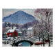 "Sandvika" est une peinture évocatrice qui saisit la beauté sereine du village norvégien de Sandvika. Cette oeuvre illustre la capacité de représenter des paysages naturels avec une touche impressionniste caractéristique. Le tableau présente un paysage paisible au bord de la rivière, avec un petit village niché au milieu de collines et d'arbres enneigés. Le fleuve, probablement le Sandvikselva, est au coeur de la composition, reflétant le ciel et le paysage environnant. L'utilisation d'une palette de couleurs cool, dominée par les blancs, les bleus et les gris, traduit efficacement l'atmosphère fraîche et croustillante d'une journée d'hiver. Les coups de pinceau sont amples et fluides, capturant le jeu de la lumière sur la neige et l'eau. Les édifices du village sont aménagés avec des contours doux et diffus, se mélangeant harmonieusement au paysage environnant. L'effet général est celui de la tranquillité et de la beauté tranquille, typique d'une capacité à transformer des scènes de tous les jours en oeuvres d'art captivantes. "Sandvika" est un témoignage de la polyvalence et de la profonde appréciation des paysages variés rencontrés en Norvège. Il reflète la maîtrise de la captation des effets transitoires de la lumière et du temps, ainsi que l'habileté à transmettre l'humeur sereine et contemplative d'un paysage d'hiver.
