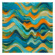 "Sanlúcar" Vagues bleu vert orange. Un Mélange Abstrait Coloré. Couches de bleus, vert et orange se mélangent, formant des vagues qui rappellent un fond marin multicolore avec sable, mer et algues en harmonie.