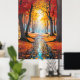 Cette affiche enchanteresse capte l'essence de la chute dans une scène à couper le souffle que les spectateurs invitations dans un voyage serein. Une route sinueuse serpente à travers une forêt en flammes avec les teintes vibrantes de l'automne. Les arbres, habillés de leurs plus beaux rouges et jaunes, se tiennent comme des gardiens silencieux de part et d'autre du chemin, leurs feuilles formant une canopée colorée au-dessus. La lumière du soleil filtre à travers le feuillage, projetant une lumière chaude et dorée qui améliore la beauté de la scène. Parsemé le long de la route, les reflets bleus, rappelant le ciel d'automne clair ci-dessus, ajoutent un contraste rafraîchissant à la palette chaude. Cette représentation pittoresque d'un paysage d'automne est une célébration de la splendeur de la nature, invitant les observateurs à se perdre dans sa tranquillité.