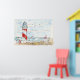 Un imprimé couleur eau d'un phare et d'un voilier sur l'eau.