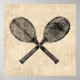 This product feh a vintage print with a tennis rackets design with illustrated antique artwork on a beige color script paper style background. Parfait pour tout joueur de tennis ! Visit our shop for more vintage art themed items and fun classy antique art pattern products!