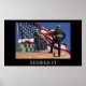 Un escadron de fusils de la Marine lors d'une cérémonie publique et un immense drapeau américain en toile de fond. Les mots "semper fi" à botton, terme latin raccourci de "semper fidelis", signifiant "toujours fidèle". Très coloré et patriotique