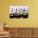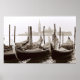 4 Gondolas assis dans le Grand Canal dans le brouillard matinal dans une photo sépia couleur.