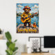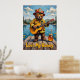 Cette charmante oeuvre présente un ours habillé en pompier, avec casque et lunettes de soleil, jouant d'une guitare acoustique sur un quai en bois. Un pot de miel se trouve à proximité. L'arrière - plan montre un lac serein, des montagnes, et un ciel bleu avec des nuages moelleux. Le tableau utilise des coups de pinceau épais et texturés, donnant une sensation de fantaisie et de coeur, avec "Love My Honey" écrit ci-dessous.