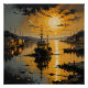 Vibrant, expressive painting of a rustic fishing boat at a serene harbor. Perfect for home decor