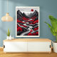 Serene Mountain Serenity : Plongez dans la tranquillité de cette oeuvre captivante. Une rivière sinueuse coule à travers une vallée nichée entre des montagnes majestueuses, leurs sommets atteignant un coucher de soleil enflammé. Le feuillage d'automne plein de vitalité ajoute une touche de chaleur à la scène, créant un sentiment de paix et d'harmonie.