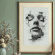 Poster Sérénité brisée : Visage d'art monochrome
