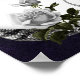 Un dessin de Saint-Valentin foncé et gothique avec un serpent noir et argenté ombragé de roses blanches au-dessus d'un coeur de cristal et un arrière - plan violet foncé imitation feuille. Passez une délicieuse Saint-Valentin et un Magickal Lupercalia !