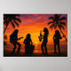 Tandis que le soleil se couche, peignant le ciel dans des teintes d'orange, de rose et de violet, quatre Rastafariens jaillissent sur la plage, silhouette par la lueur, perdue au rythme du moment. Le pouls de bongos, la strum de guitare et le rire flottent sur la brise. C'est du reggae pour le soleil, un envoi sacré à une autre journée parfaite au paradis. L'ambiance est réelle. L'esprit est libre.