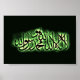 Une belle calligraphie islamique de la Shahada, la confession islamique de foi "Il n'y a pas de dieu sauf pour le seul Dieu; Mahomet est l'apôtre de Dieu." sur un arrière - plan noir et vert brillant. Cette impression est disponible sur affiche, en toile imprimée et sur de nombreux autres produits, qui sont de beaux cadeaux pour les jeunes musulmans en particulier.