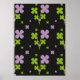 Modèle floral original, shamrocks vert et violet sur arrière - plan noir.