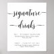 Ce panneau du menu boissons signature est doté d'un titre de script de calligraphie moderne et d'un design minimaliste. L'en-tête de texte du script est une image qui ne peut pas être modifiée. L'image de titre peut être redimensionnée pour correspondre à n'importe quelle taille d'affiche. Tous les autres textes sont entièrement modifiables. Pour une personnalisation plus avancée de cette conception, il suffit de cliquer sur le bouton "Customiser" ci-dessus.