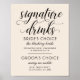 Design moderne et chic neutre crémeux chaud blanc et noir mariage Signature Boissons affiche un design typographique noir élégant avec des accents de script de calligraphie audacieux et élégant texte personnalisé qui peut être personnalisé avec le choix marié de boissons et d'ingrédients personnalisés.