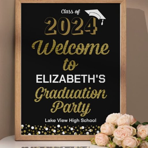 Le "Gold Foil Script S’more Confetti Black Grad Sign" est un panneau de graduation élégant et attrayant conçu par CaMiDesigns. Il est doté d'un design calligraphique audacieux associé à des confettis d'or et une casquette de graduation, ce qui en fait la pièce maîtresse parfaite pour toute célébration de graduation. Pour toute commande, expédition, informations sur le produit et assistance, veuillez contacter directement le service à la clientèle de Zazzle.