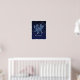 Poster représentant le symbole de Gemini en bleu argenté doux, recouvert d'étoiles de la constellation, contre un arrière - plan étoilé du bleu nuit profond au noir.