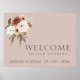 Signe Rustique rose et vert Mariage floral. Élégamment invitation vos invités à votre jour de mariage avec cette enseigne mariage élégamment conçue avec un magnifique mélange de pêche et de fleurs vert olive sur un arrière - plan d'or rose. Cette enseigne mariage a un beau design floral et botanique, avec des vibes rustiques et boho, parfait pour votre mariage d'inspiration fleurie ou fleur sauvage. La disposition minimale et simple attire l'attention sur la pêche luxuriante, les éléments floraux élégants posés sur un arrière - plan d'or rose frappant. Cette enseigne mariage donne le ton d'un beau cadre mariage, entouré d'un décor de mariage rose doré et de fleurs sauvages pêche et crème. Un complément parfait à toute célébration botanique ou boho-chic.