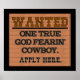 SIGNE Recherché : Un Véritable Dieu, Fearin' CowBoy. Disponible en portefeuille ou petit. Idéal pour la dame du Ranch qui cherche toujours son cowboy !