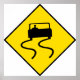 Un panneau indiquant une route glissante. Ce design semble vraiment efficace sur cette affiche