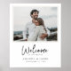 Ce modèle de bannière de mariage au style simple se caractérise par une conception moderne, minimaliste et épurée. Nous avons donné à ce design minimaliste un caractère distinct en combinant une police "Bienvenue" décontractée et animée avec vos prénoms mis en évidence en dessous, entre le reste du message de bienvenue et votre date, et nous avons laissé un espace considérable des deux côtés du texte pour un look épuré qui attire l'attention sur votre photo préférée et les mots en dessous. Nous avons également ajouté une fine bordure autour de la photo dans un ton or élégant appelé Or Californie. Si vous avez une photo en couleur que vous souhaitez convertir en noir et blanc, vous pouvez activer le filtre photo noir et blanc pour voir à quoi elle ressemblera. Utilisez votre inspiration, votre photo préférée et les outils de conception intuitifs pour rendre cette bannière de mariage polyvalente unique. Et n'oubliez pas de jeter un coup d'œil à notre collection de bannières de mariage pour d'autres conceptions simplement chic, y compris des versions de ce design sans la bordure dorée autour de la photo, avec un "Bienvenue" doré, avec la bordure dorée, et également une avec un "bienvenue" doré sans la bordure autour de la photo !