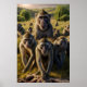 Un groupe animé de singes perchés au sommet d'une souche d'arbre patinée, leurs antiques ludiques remplissant l'air d'énergie et de bavardage.
