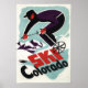 Colorado - Skieur habillé noir et pourpre Colorado Poster - Colorado a été créé en 1950. Cette image représente des scènes du Colorado.