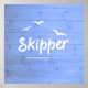 Poster de voile amusant avec le mot Skipper écrit dans une police blanche cool. Superbes arrière - plans et mouettes blanches à effet de bois bleu vif volant au-dessus. Idéal pour les chambres à thème maritime et nautique, les clubs nautiques et les bars de plage. Cherchez à coordonner les produits dans mon magasin. Demandez si vous souhaitez voir ce design sur d'autres produits, ou si vous avez un design, vous aimeriez que je crée.