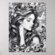Elevate your space with serene beauty. This striking monochrome poster captures a woman with closed eyes, her long hair flowing gently among a delicate arrangement of florals. The soft contrasts and intricate details evoke a sense of calm, introspection, and timeless elegance. Perfect for bedrooms, living rooms, or creative spaces, this artwork adds a touch of sophistication and peaceful charm to any wall.