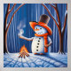 Le Snowman est dans le camp de nuit, se réchauffant avec le feu